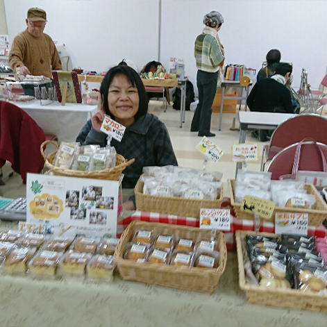 4月から新しいメンバーも増え、現在18歳~65歳の10名の仲間が毎日楽しく作業をしています。作業内容としては、主にお菓子作りや軽作業、広報紙の配布や体力作りのための散歩等を行っています。とものお菓子工房は、清水基金様の助成を受けて機材をそろえ、2014年6月から稼働を始めました。職人さんが指導に入ってくれるようになり、仲間たちのモチベーションも上がっています。あさ作業所から引き継いだ型抜きクッキーに加え、アマンドやラングドシャ、タルトレット、パウンドケーキなど、おいしい新作のお菓子が続々と登場しています。注文も途切れず、工房はフル稼働!忙しくて、みんなうれしい悲鳴です。